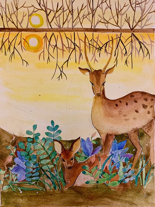 技術(shù)支持: 方森科技寓意:此畫(huà)旨在倡導人與自然和諧發(fā)展、和諧共生、保護動(dòng)物、保護生物多樣性。小作者用自己手中的畫(huà)筆將心中對小鹿的喜愛(ài),對動(dòng)物生命的崇敬,描繪了夕陽(yáng)下綠草叢蔭中兩只麋鹿安詳的棲息地的唯美畫(huà)面。通過(guò)鹿的棲息地體會(huì )到小作者內心的溫暖,用畫(huà)作來(lái)感悟生命,以藝術(shù)呵護生命,以真情來(lái)倡議大家保護動(dòng)物,參與到生命共同體的保護行列中。