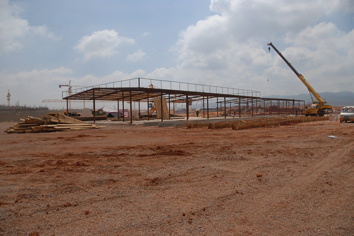 A3 臨設施工進(jìn)行中。背景是先期開(kāi)工、已在進(jìn)行主體結構施工的航站樓工程。