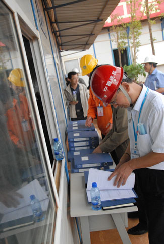 技術(shù)支持: 方森科技 7月14日,省、市、區建設行政主管部門(mén),安全生產(chǎn)監督部門(mén)和昆明新機場(chǎng)建設指揮部的領(lǐng)導和專(zhuān)家蒞臨五有限公司新機場(chǎng)項目部檢查和指導工作,在參觀(guān)了停車(chē)樓工程現場(chǎng)施工情況后,召開(kāi)昆明新機場(chǎng)建設施工安全質(zhì)量標準化工作現場(chǎng)會(huì )。會(huì )上,省建設廳副廳長(cháng)郭五代向五公司頒發(fā)了獎牌和證書(shū)。