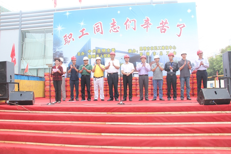 金桂飄香,中秋佳節即將來(lái)臨,昆明市工人文化宮遷建項目工地一片繁忙。8月29日上午,昆明市總工會(huì )主席戚永宏一行到工人文化宮遷建項目工地慰問(wèn),向建設者們表達了節日的問(wèn)候和祝福。