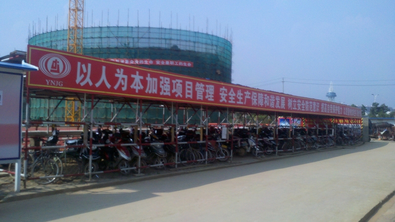 按照集團和公司標準化實(shí)施細則的要求,項目部進(jìn)場(chǎng)前做了充分的準備工作,提前設計了臨時(shí)設施總平面規劃圖,在避開(kāi)塔吊覆蓋范圍確保工作人員安全的提前下,劃分生活區和辦公區,并對兩區域進(jìn)行了混凝土硬化。辦公區活動(dòng)房有兩層,總面積約為320平方米,宿舍約200多平方米,配備了太陽(yáng)能浴室?,F場(chǎng)還設置了近100平方米的停車(chē)場(chǎng)和200多平方米的吸煙區、茶水區,其中停車(chē)場(chǎng)和單車(chē)棚采用植草磚鋪地,并設了照明和30余個(gè)插線(xiàn)板方便電單車(chē)充電。齊全的配套設施,為項目部創(chuàng )造了良好的工作、生活環(huán)境,解決了后顧之憂(yōu),讓大家全力以赴投入工程建設中去。