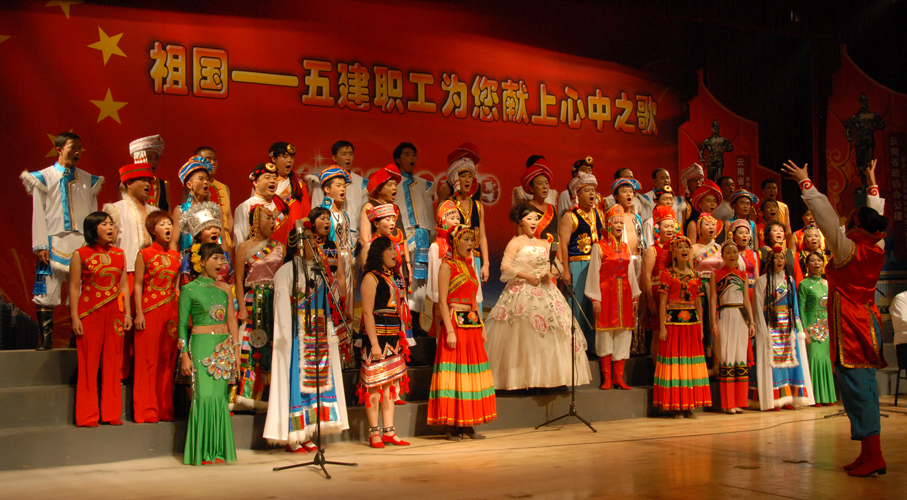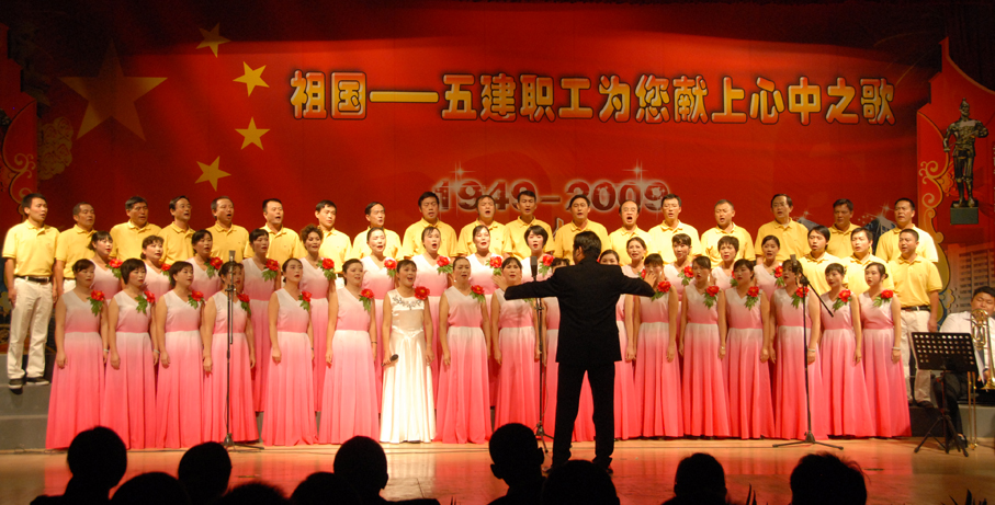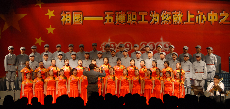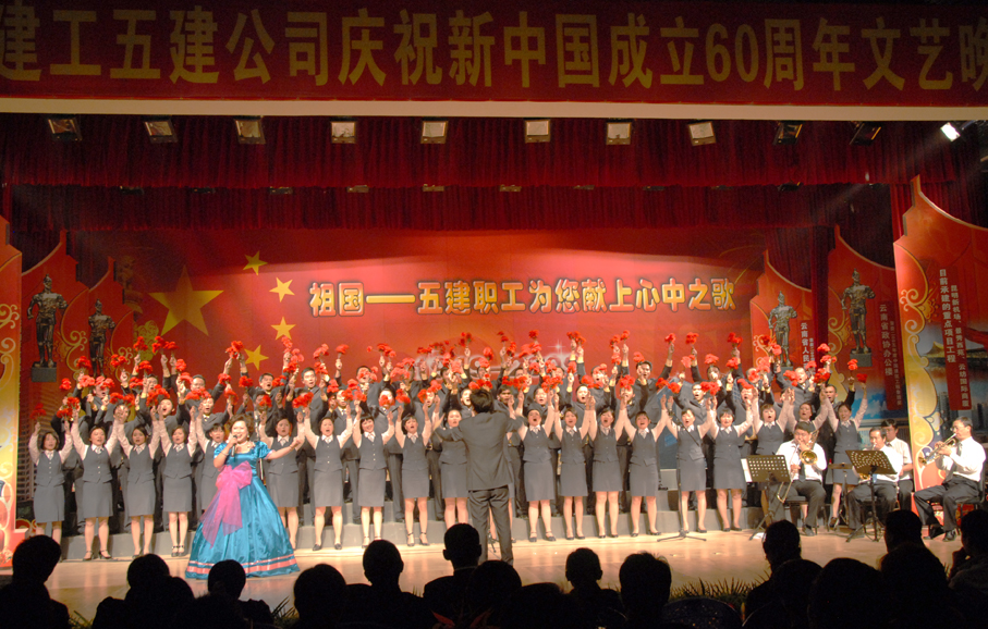 五建公司于9月28日晚在公司禮堂舉辦以《祖國――五建職工為你獻上心中的歌》為主題的文藝晚會(huì ),慶祝中華人民共和國建立六十周年。來(lái)自公司和基層22個(gè)單位的700多名在職及退休職工,共演出了19個(gè)節目,大家以飽滿(mǎn)的熱情祝福偉大的社會(huì )主義祖國,用嘹亮的歌聲抒發(fā)對偉大祖國的熱愛(ài),以昂揚的斗志表達實(shí)現公司跨越式發(fā)展的決心。