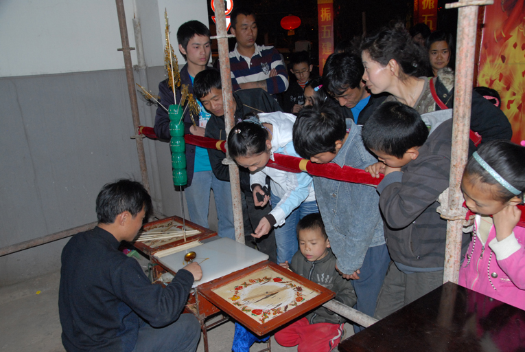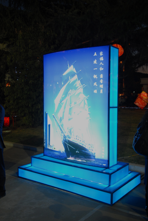 由基層各單位送來(lái)的參展作品異彩紛呈。最醒目的是主席臺旁的公司五大標志性建筑燈箱,新機場(chǎng)項目的詩(shī)詞是機場(chǎng)項目部工會(huì )主席楊應同志所寫(xiě)的《念奴嬌.新機場(chǎng)建設有感》,表現了奮斗在工地上職工們的朝氣蓬勃;506分公司作品是他們自行設計的圖案,開(kāi)頭是4,后面9個(gè)0,象征著(zhù)公司今年要完成40個(gè)億的經(jīng)營(yíng)任務(wù);門(mén)上的兩個(gè)工藝精美的古典燈籠結合我們501分公司的一幢幢現代建筑,古樸中透著(zhù)現代的氣息;第一個(gè)獲得魯班金像獎的505直管項目部的送來(lái)的作品立體又質(zhì)感;海天一色中揚帆的船寓意著(zhù)家福人和,菊香明月,五建一帆風(fēng)順……各式各樣的彩燈都表達著(zhù)對五建公司的美好祝福。兩個(gè)集體趣味項目超級大腳板和抬氣球,分別由新機場(chǎng)項目部、景秀西苑項目部、502直管項目部和507分公司派出的代表隊參加,團隊的力量一目了然。民間藝人表演的《變臉》、《頂碗》和魔術(shù)《飛桌子》以及劃彩船、騎毛驢等傳統項目吸引了眾多的觀(guān)眾。燈謎區人頭攢動(dòng),同時(shí)進(jìn)行的還有元宵湯圓和冰糖葫蘆大贈送;民間藝人現場(chǎng)表演了剪紙、草編、畫(huà)糖畫(huà)、捏面人等節目,他們的手工作品都現場(chǎng)免費贈送給大家。