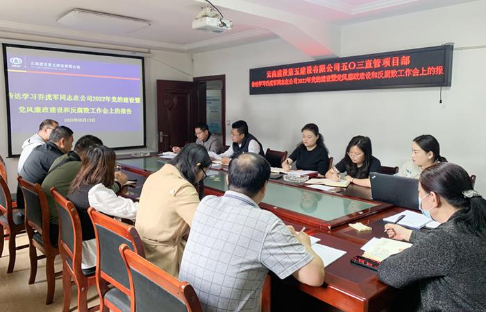 五〇三宣貫學(xué)習喬虎軍同志在公司2022年黨的建設暨黨風(fēng)廉政建設和反腐敗工作會(huì )會(huì )議精神
